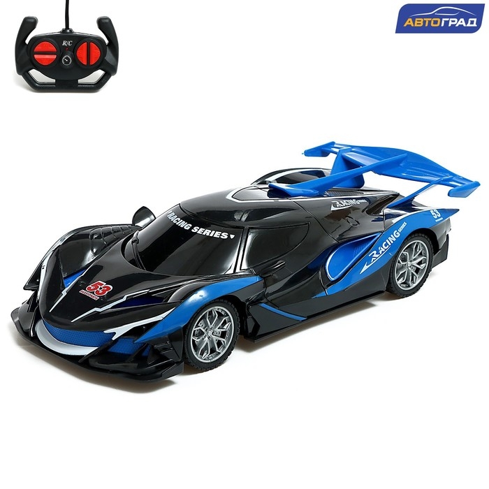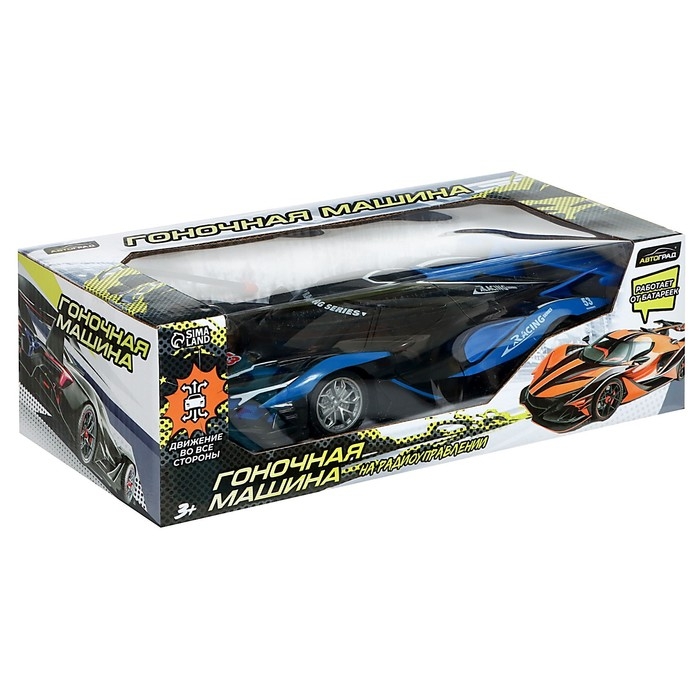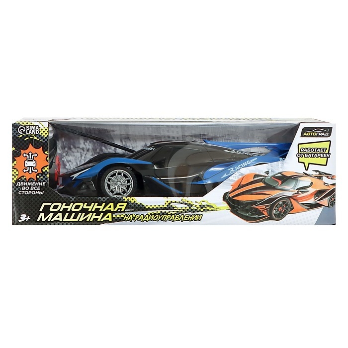 Гоночная машина на радиоуправлении, работает от батареек, цвет сине-чёрный