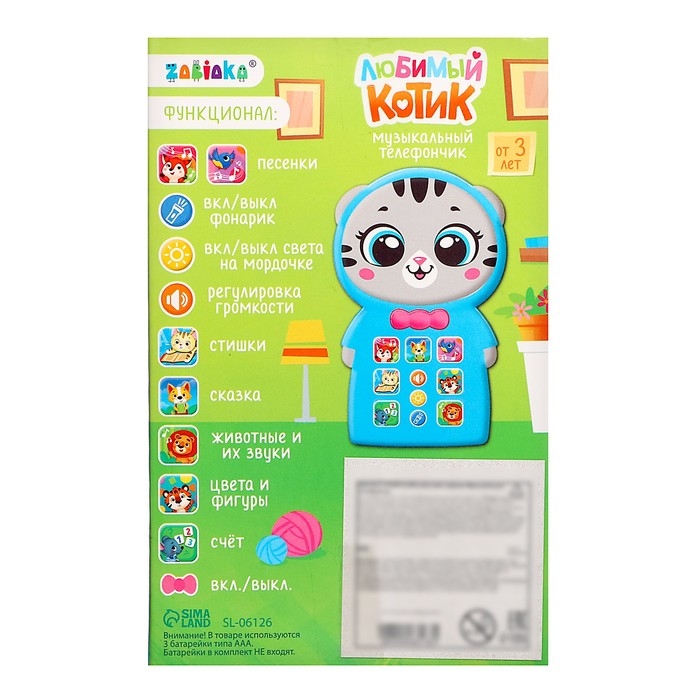 Музыкальный телефончик «Любимый котик» привлечёт внимание трогательным дизайном и надолго займёт малыша благодаря множеству полезных функций. Игрушка не только развлечёт ребёнка — с ней можно осваивать новые навыки!