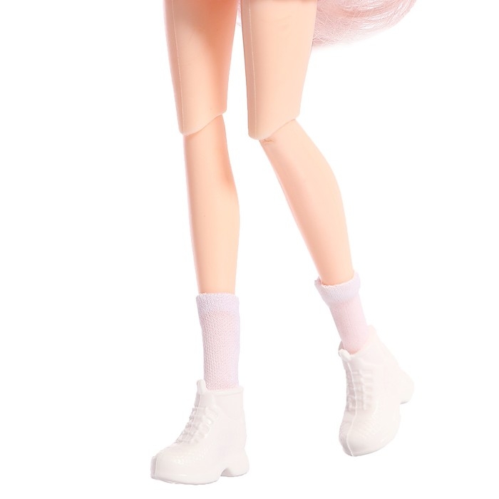- Кукла шарнирная в локтях, кистях рук и коленях, также имеются подвижные элементы в плечах и бёдрах, что позволяет придавать ей естественные позы и делает игру более увлекательной.
