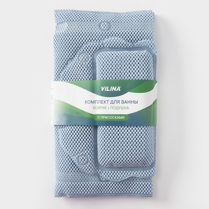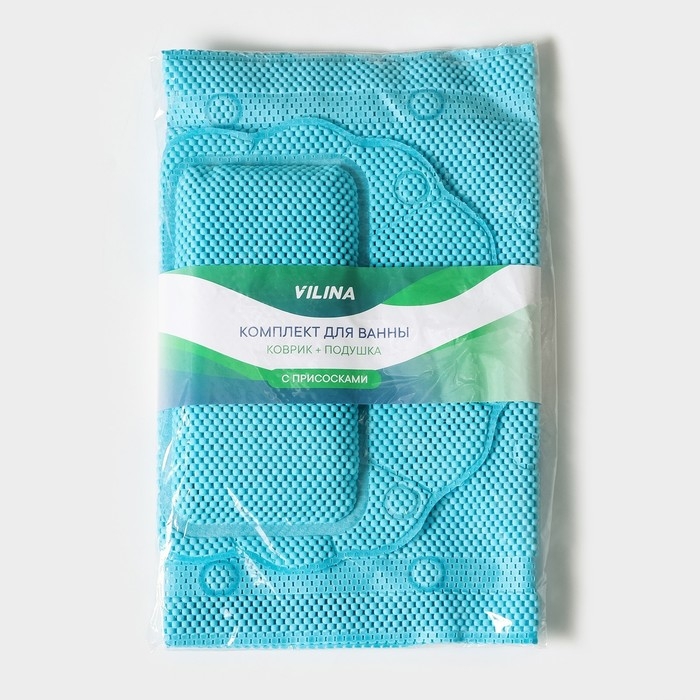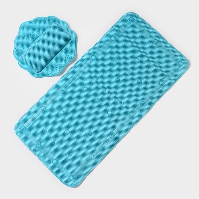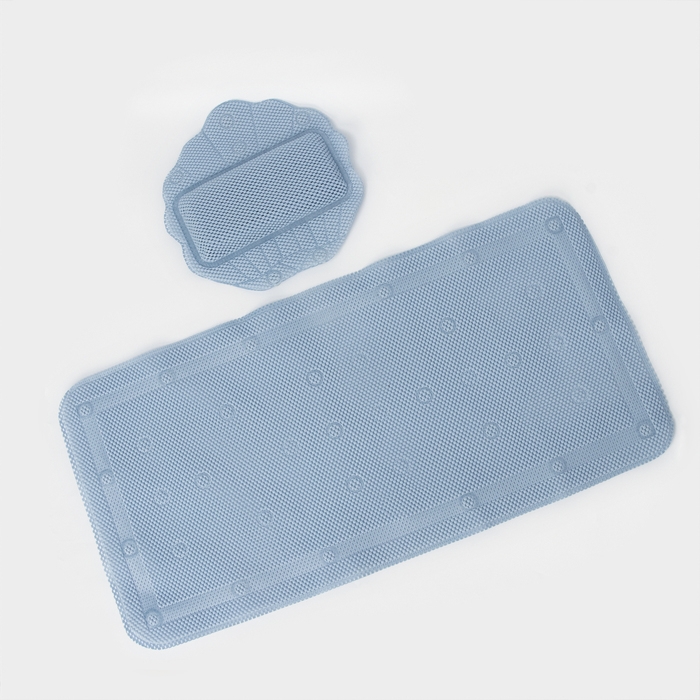 Набор для ванны с присосками «Лотос», коврик 43×90 см, подушка 33×33 см, цвет синий