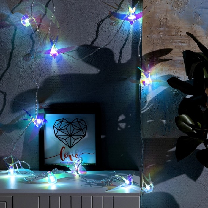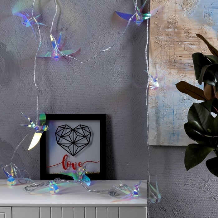 Гирлянда «Нить» 2.5 м с насадками «Птички», IP20, прозрачная нить, 10 LED, свечение белое, 220 В