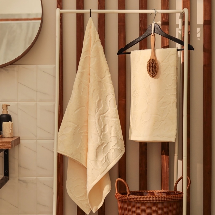 Полотенце махровое жаккардовое LoveLife Flowers 50х90 см, цвет молочный, 100% хл, 500 гр/м2