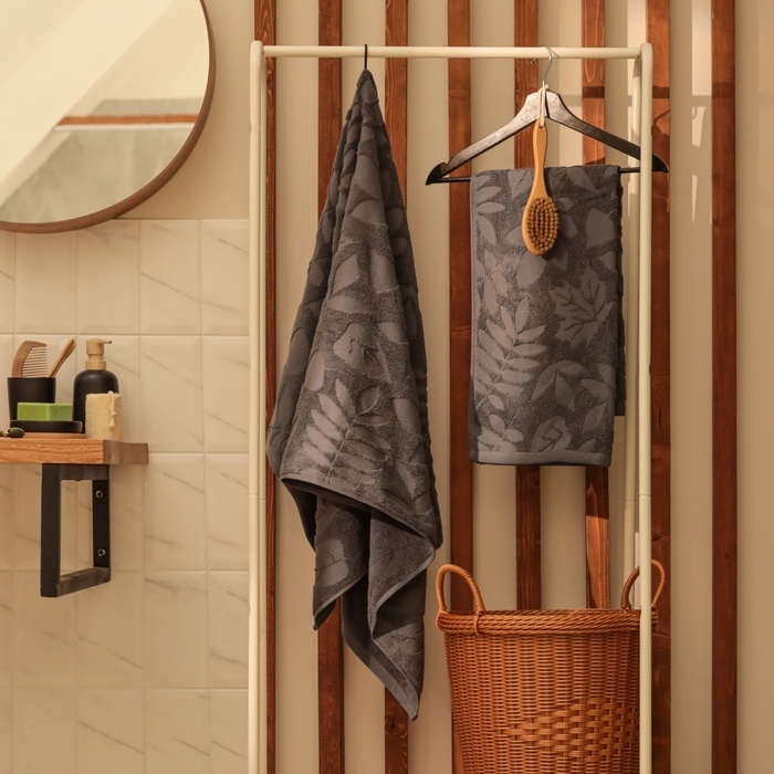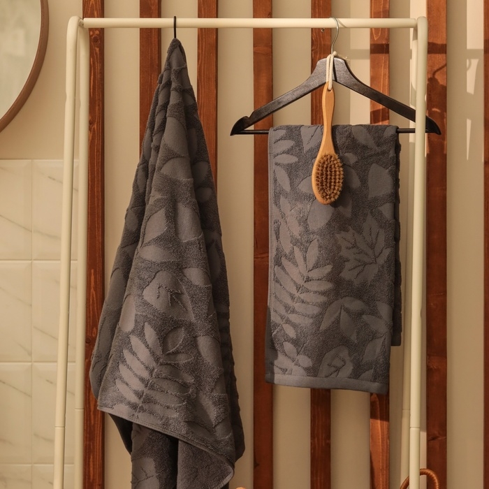Полотенце махровое жаккардовое LoveLife Leaves 70х130 см, цвет тёмно-серый, 100% хл, 500 гр/м2