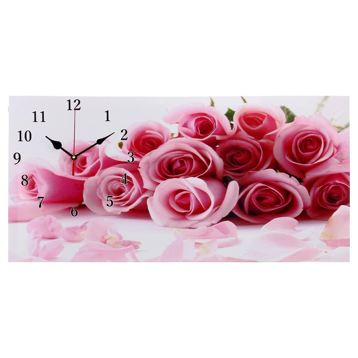 Часы-картина настенные, на холсте, интерьерные "Нежные розы", бесшумные, 40 х 76 см