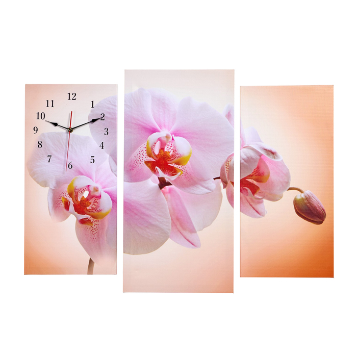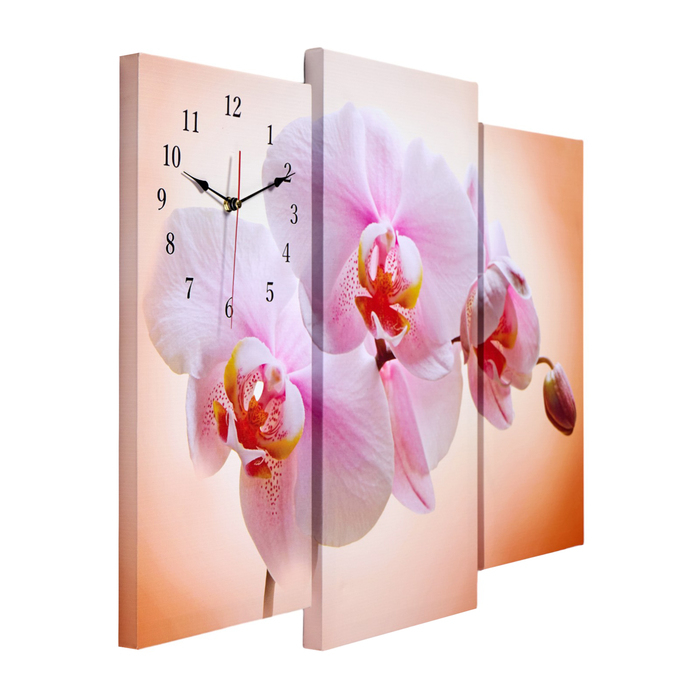 Часы-картина настенные, модульные "Розовая орхидея", бесшумные, 60 х 80 см, триптих
