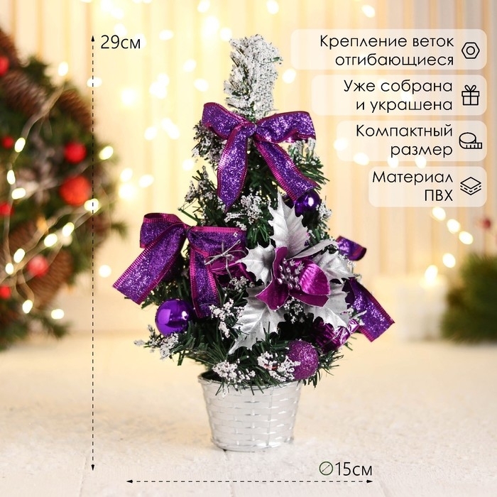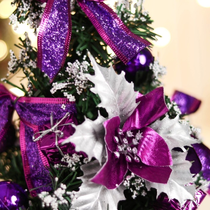 Ёлка декор "Праздничная" бантик цветок подарок, 15х29 см, фиолетовый