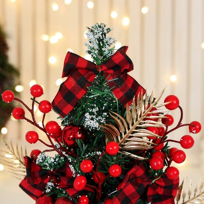 Ёлка декор "Праздничная" бантик клетка цветок, 13х28 см, красный