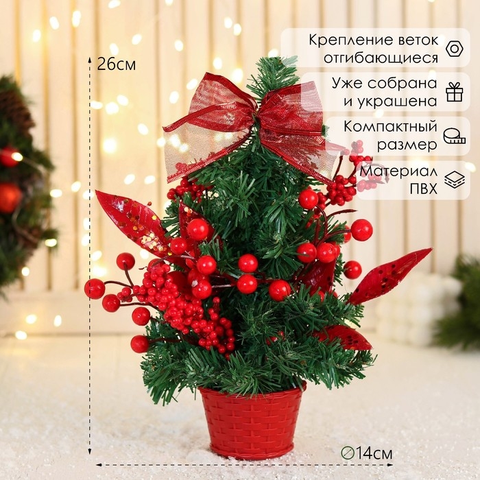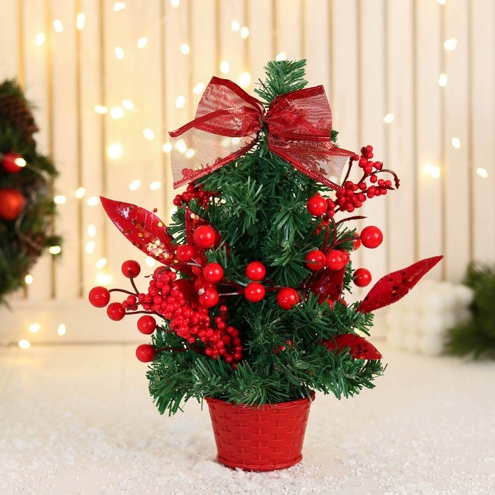 Ёлка декор "Праздничная" бантик листья ягоды, 14х26 см, красный