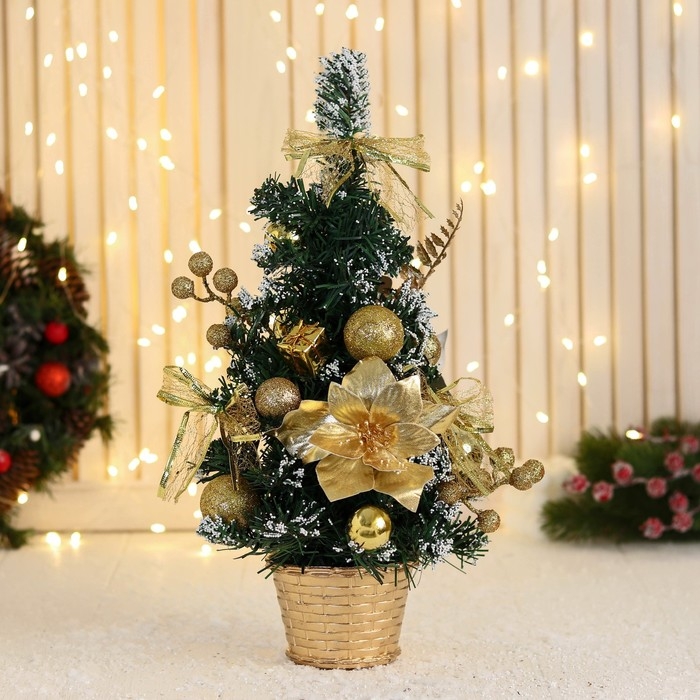 Ёлка декор "Праздничная" цветок бантик веточки, 16х36 см, золото