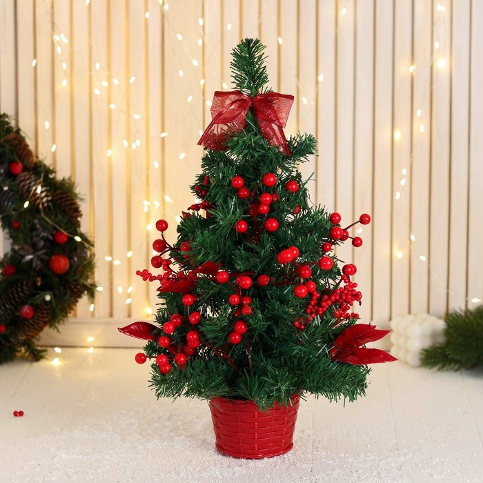 Ёлка декор "Праздничная" бантик листья ягоды, 20х58 см, красный