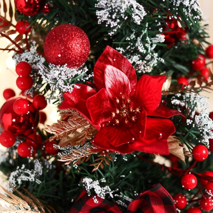 Ёлка декор "Праздничная" бантик клетка цветок, 20х58 см, красный