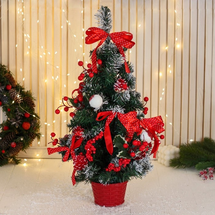 Ёлка декор "Праздничная" бантик в горох, 28х58 см, красный