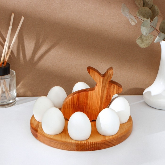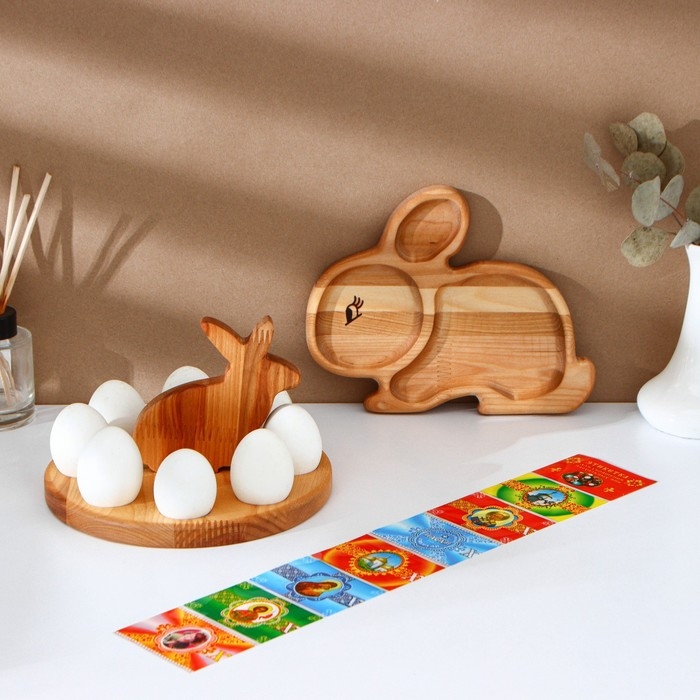 Пасхальный набор Adelica, менажница заяц, подставка для яиц 8 ячеек, d=20×1,8 см, термонаклейки 7 шт, берёза