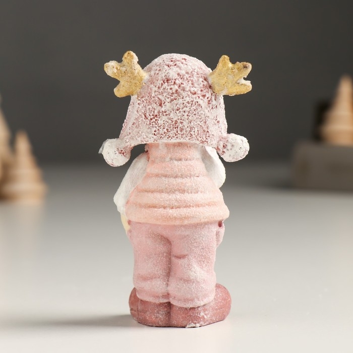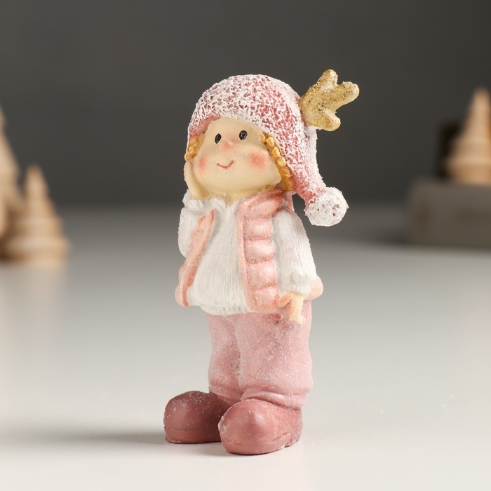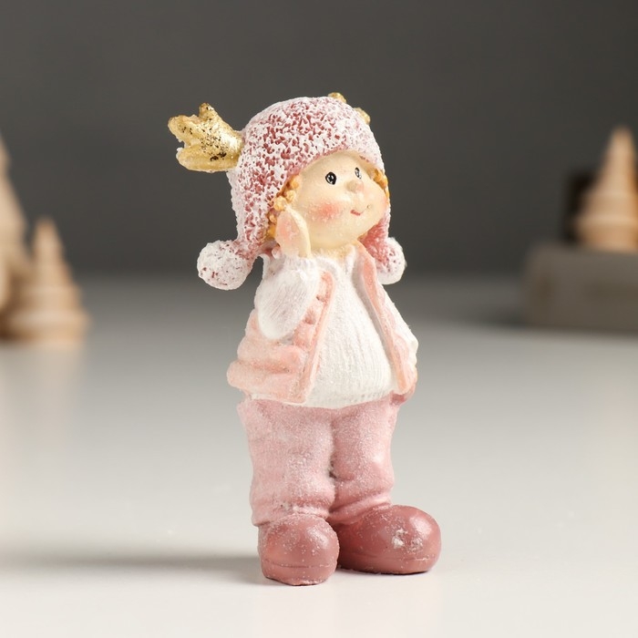 Сувенир полистоун "Малыш/Малышка в розовом, с рожками на шапке, стоит" МИКС 3х4,5х9 см