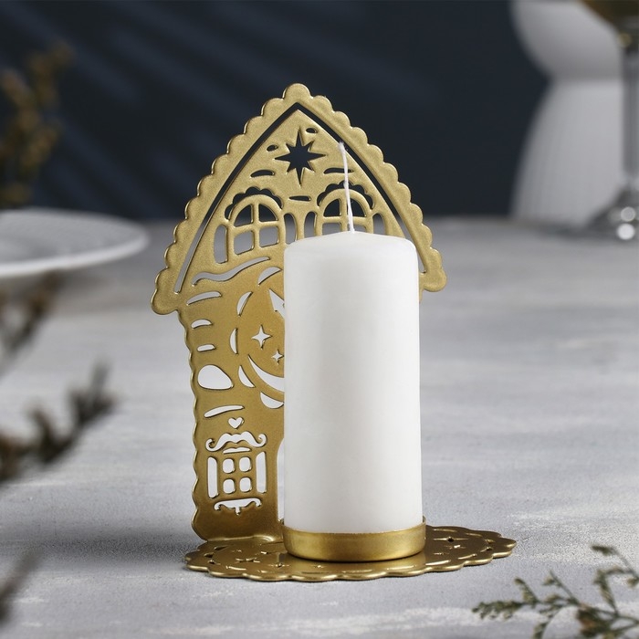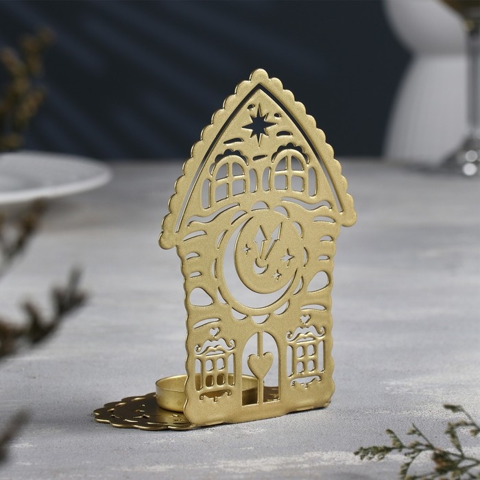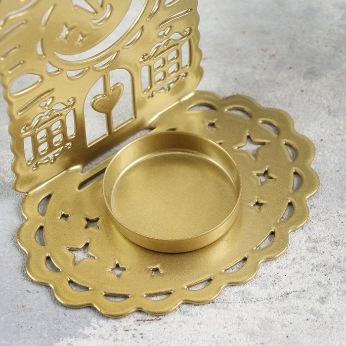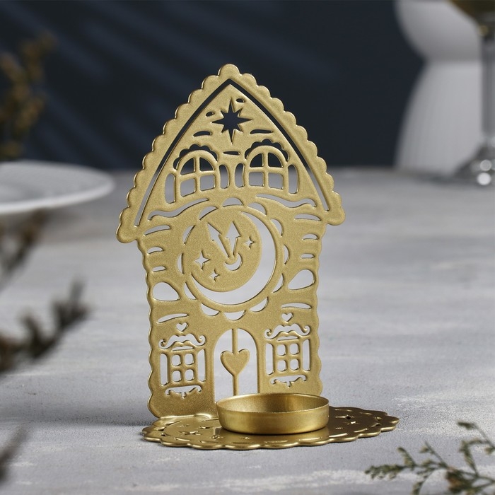 Подсвечник "Домик с часами" металл на одну свечу, 6,7х10х13,5 см, золотой