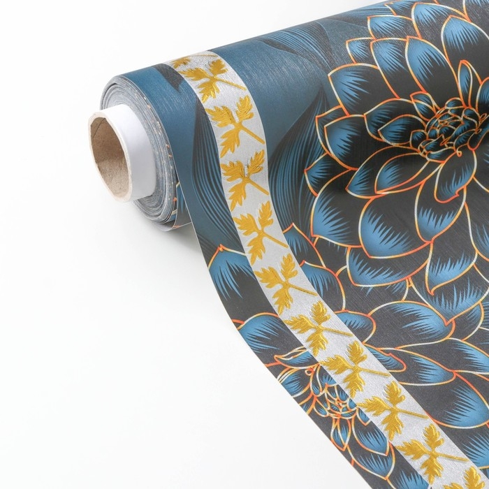 Клеёнка на стол Доляна «Синие розы», на тканевой основе, рулон 20 метров, ширина 137 см, общая толщина 0,22 мм, цвет синий