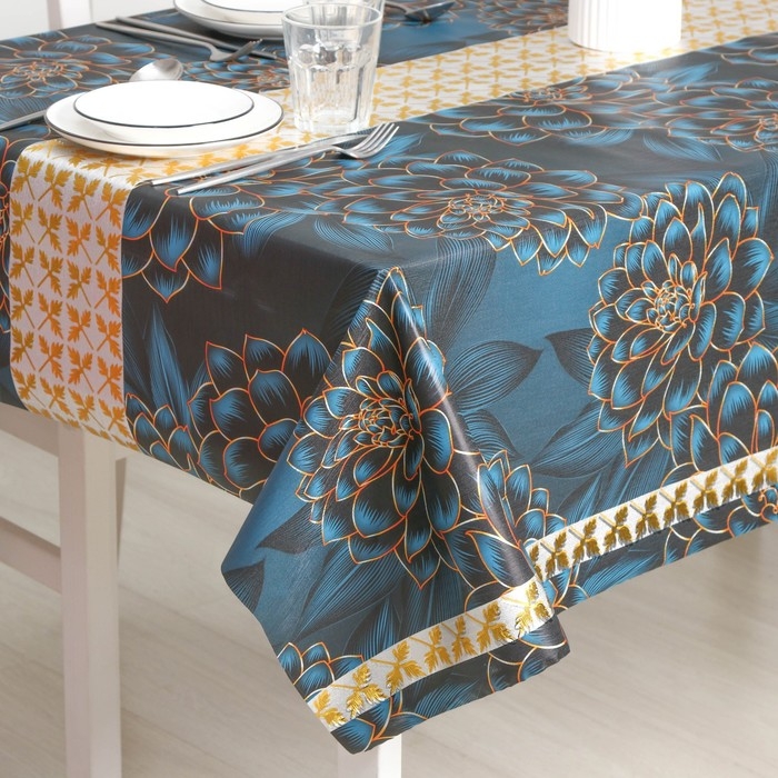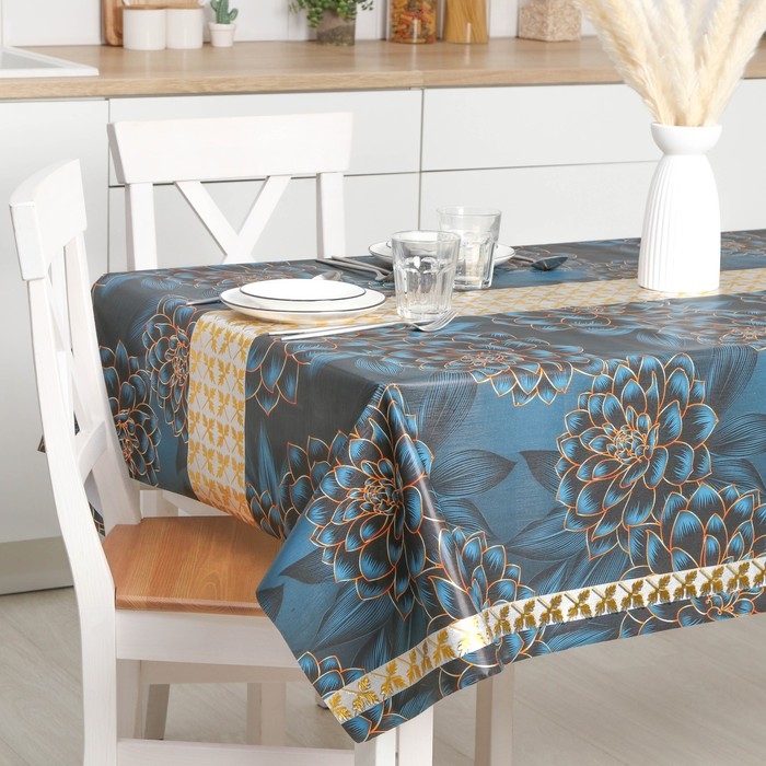 Клеёнка на стол «Федерико», на тканевой основе, рулон 20 метров, ширина 137 см, толщина 0,25 мм, цвет синий