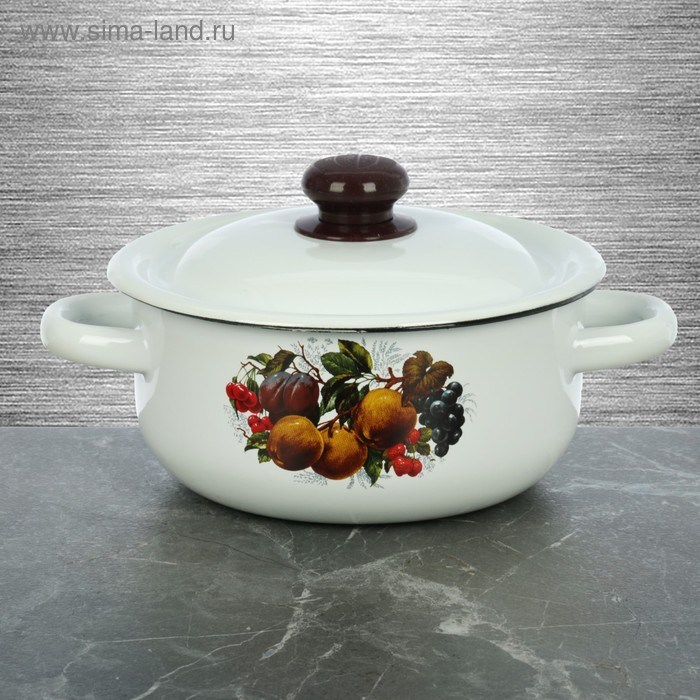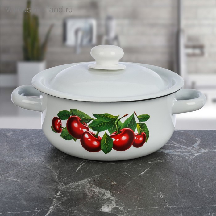 Кастрюля эмалированная 1,5 л, декор МИКС, цвет белый