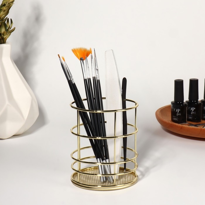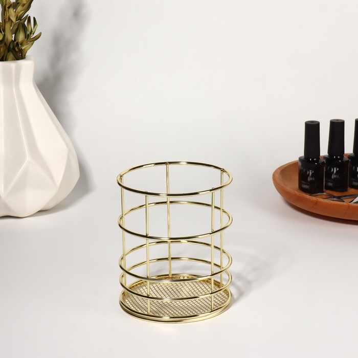 Подставка для хранения маникюрных/косметических принадлежностей «РАФАЭЛЬ», d = 9 × 10 см, цвет золотистый