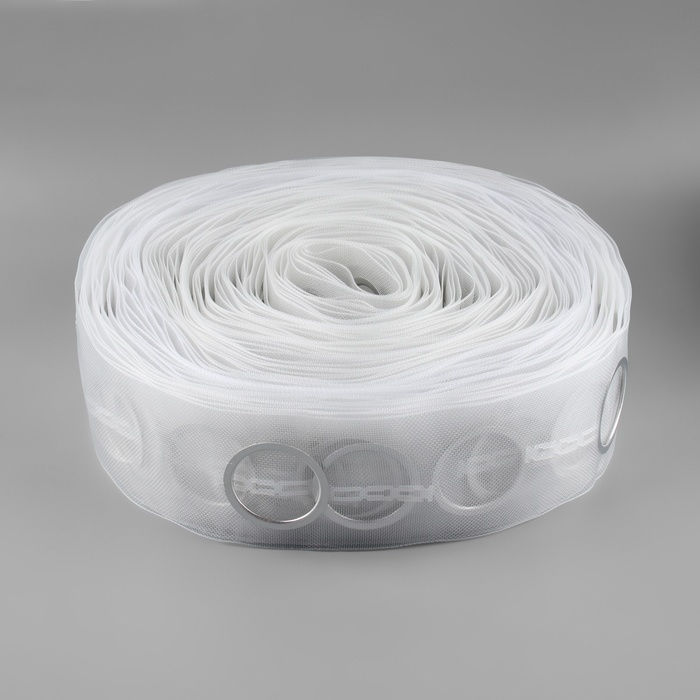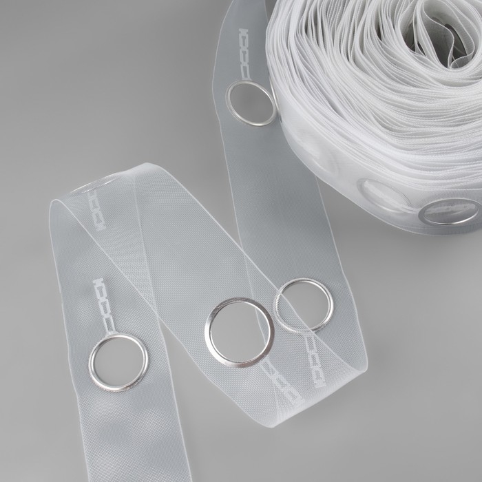 Шторная лента с люверсами, для драпировки, органза, d = 4,2 см, 8,5 см, 50 ± 1 м, цвет прозрачный/белый