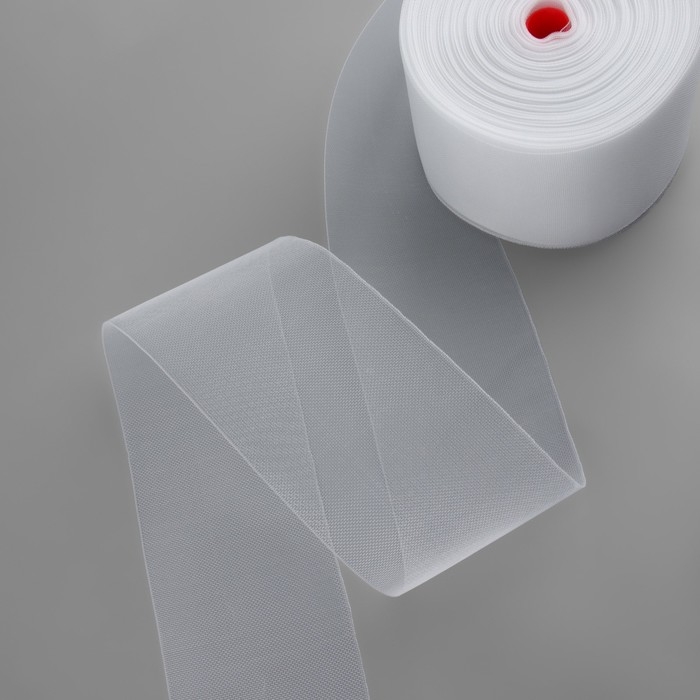 Шторная лента фиксированная сборка, органза, 6 см, 50 ± 1 м, цвет прозрачный/белый