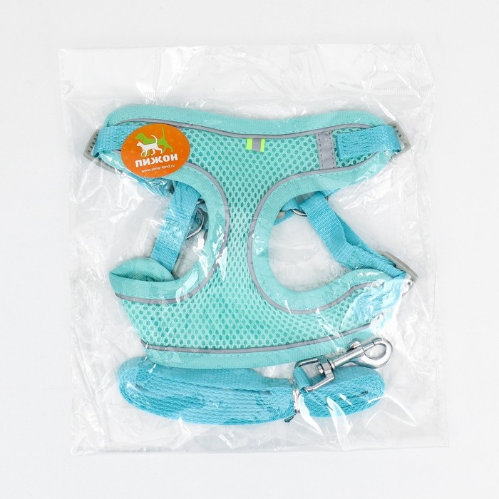 Комплект с мягкой шлейкой, быстросъемный, S, поводок 140 см, ОШ 39-41 см, ОГ 44-48 см, бирюзовый