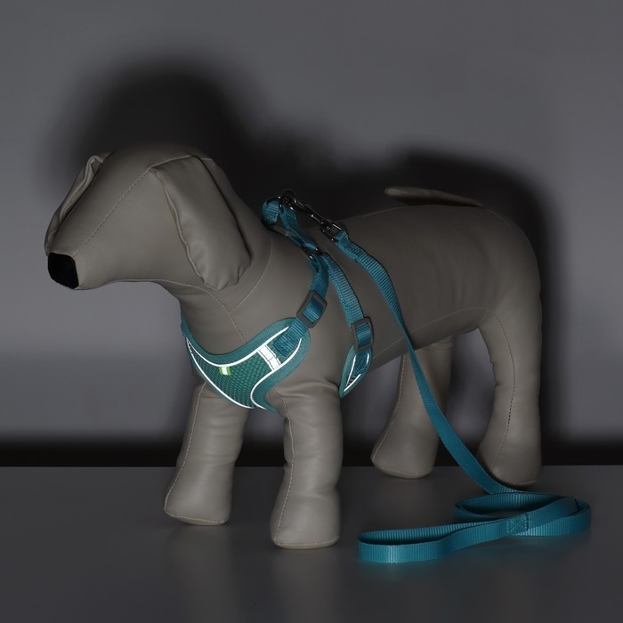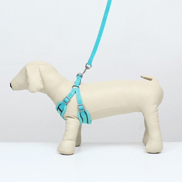 Комплект с мягкой шлейкой, быстросъемный, M, поводок 140 см, ОШ 44-48 см, ОГ 51-60 см, бирюзовый