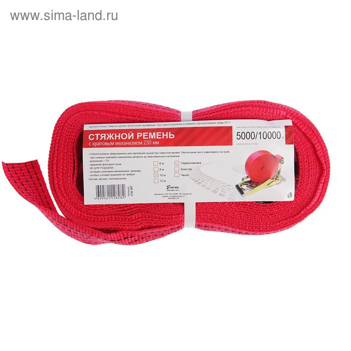 Стяжка груза с механизмом 230 мм, ширина ленты 50 мм, нагрузка 5000/10000 кг, длина 10 м