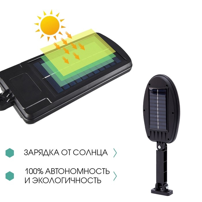 Садовый светильник на солнечной батарее с датчиком движения, накладной, 9.5 × 12.5 × 5 см, 40 LED, свечение белое