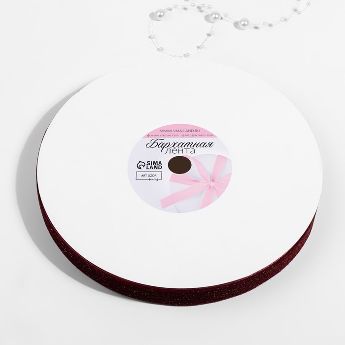 Лента бархатная, с золотым люрексом, 15 мм, 18 ± 1 м, цвет бордовый №46