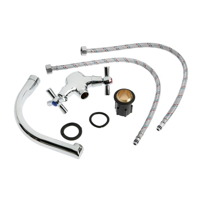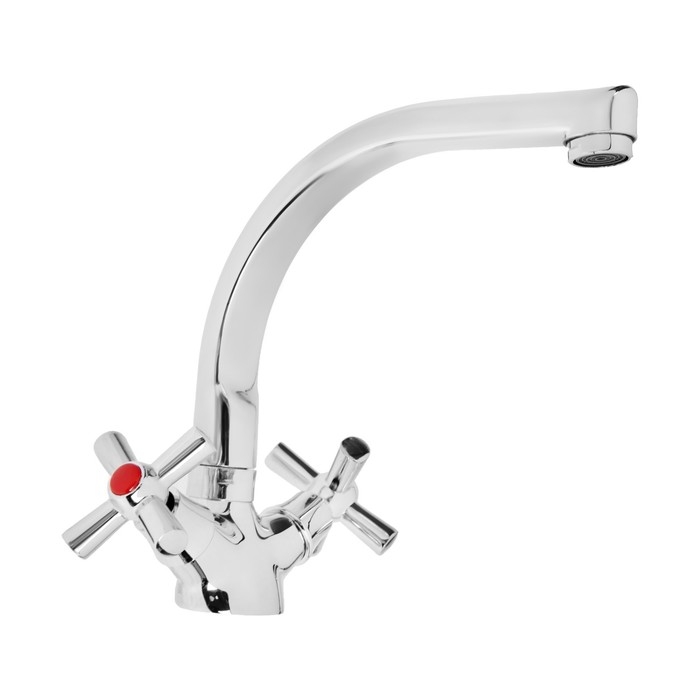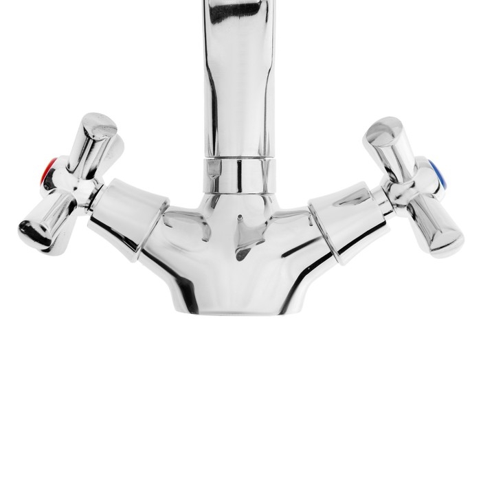 Смеситель для кухни ZEIN Z7215, двухвентильный, кран-букса латунь 1/2", латунь, хром