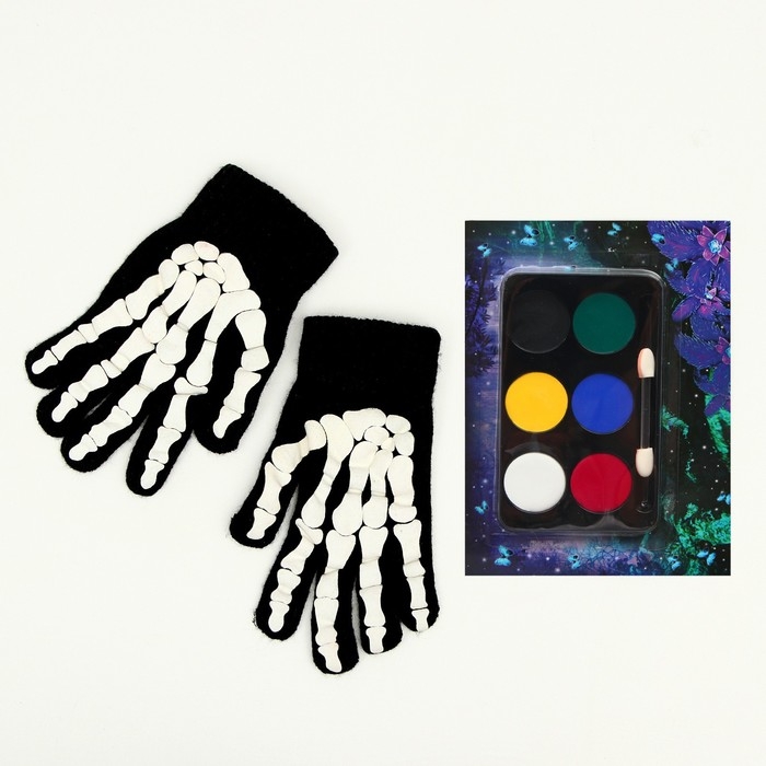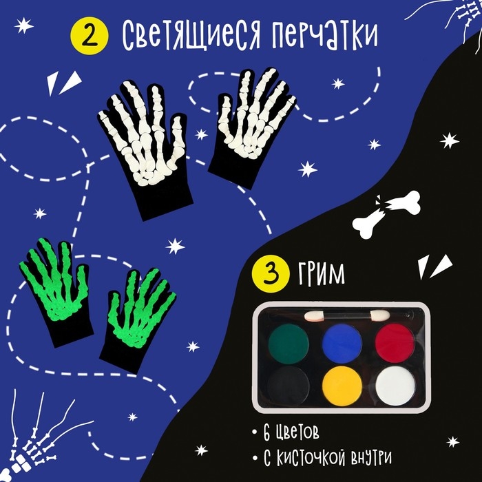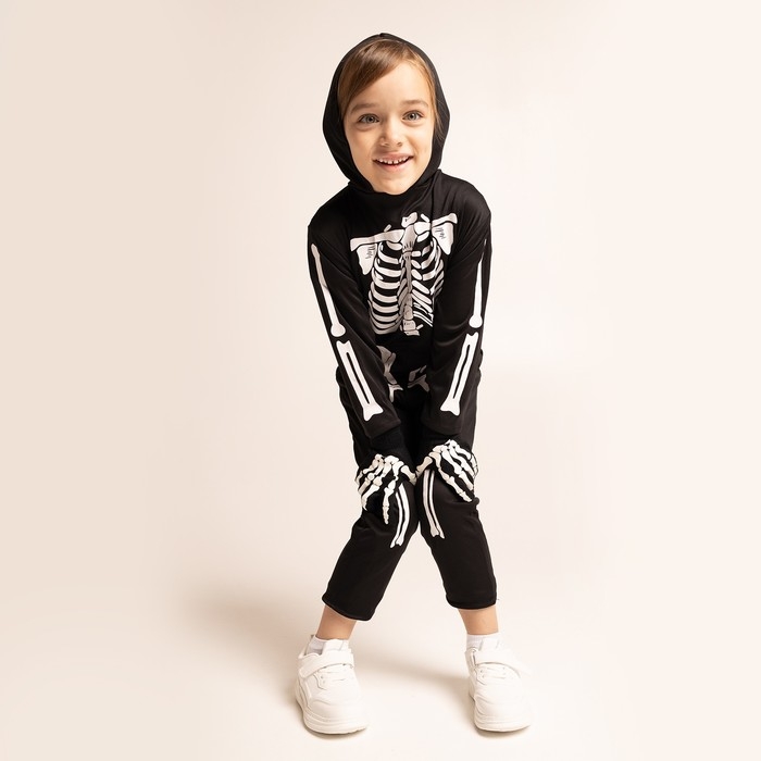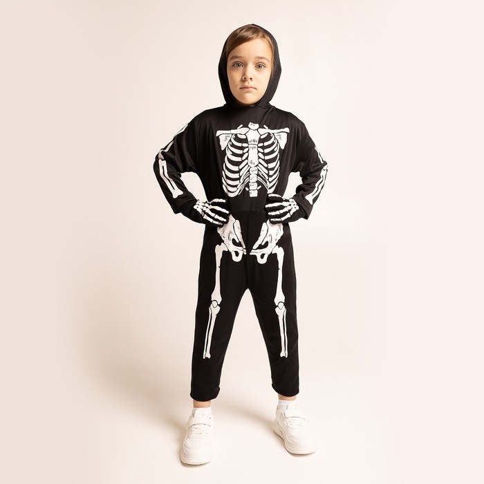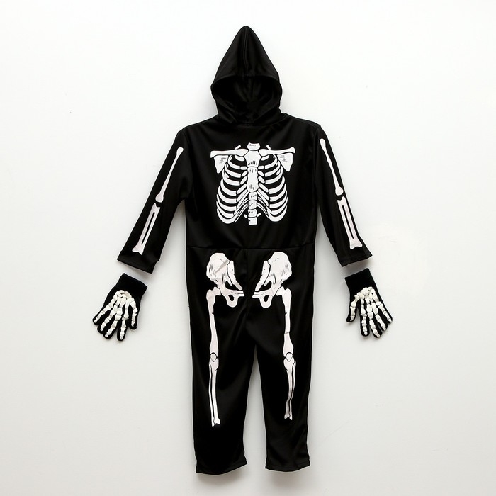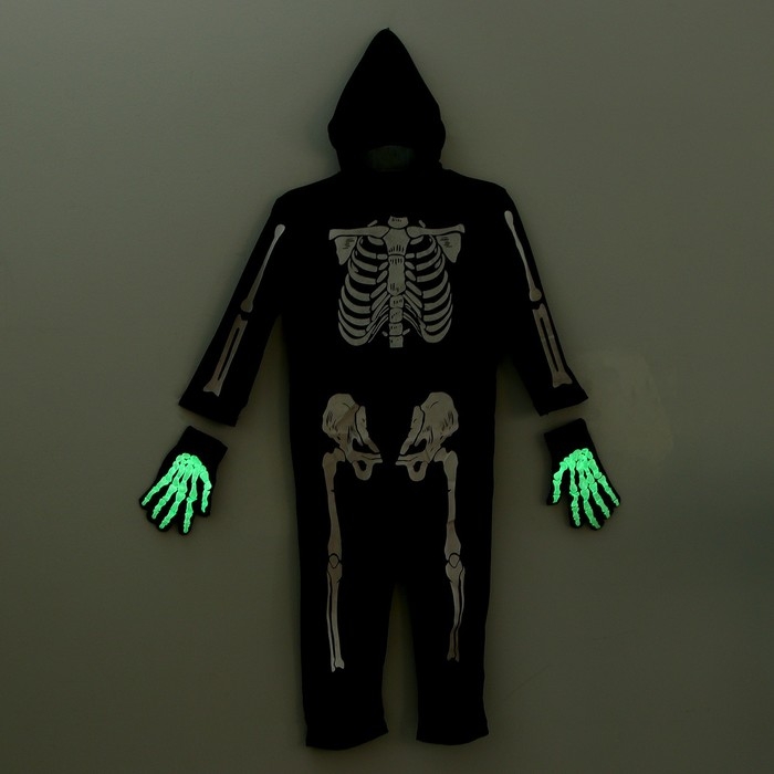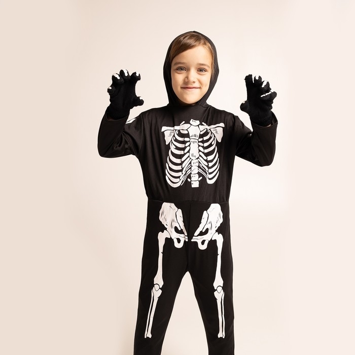Карнавальный набор «Жуткий скелетик»: комбинезон, перчатки, грим, р. 104–116 см