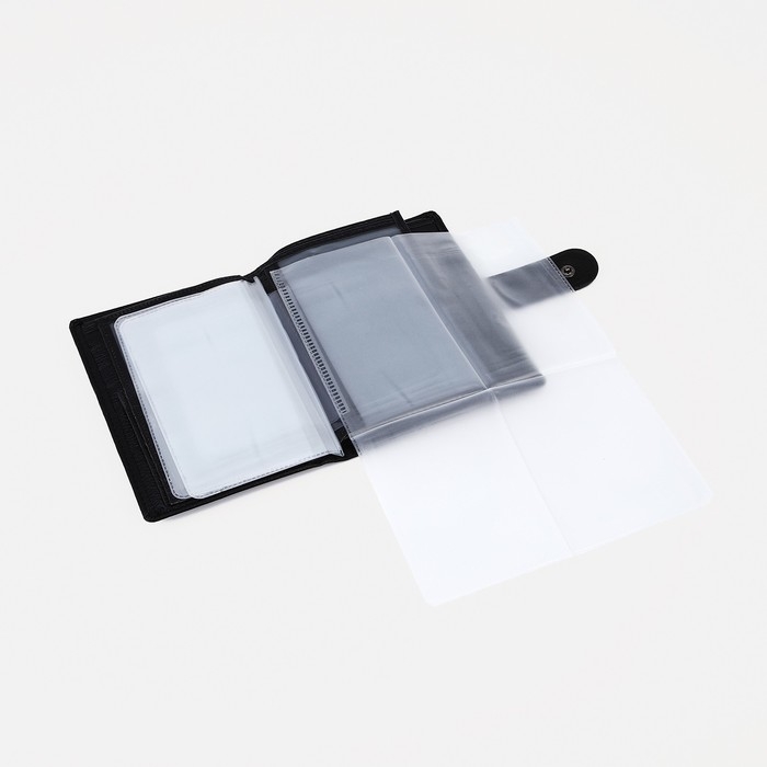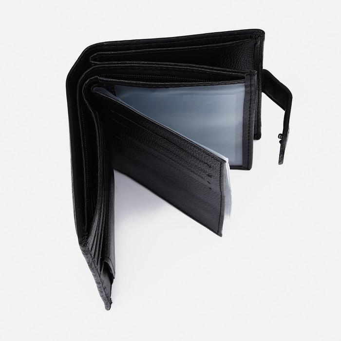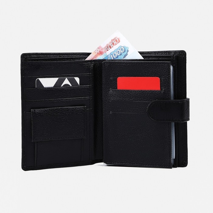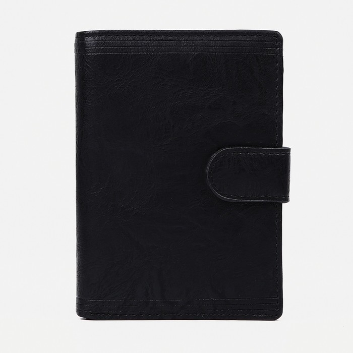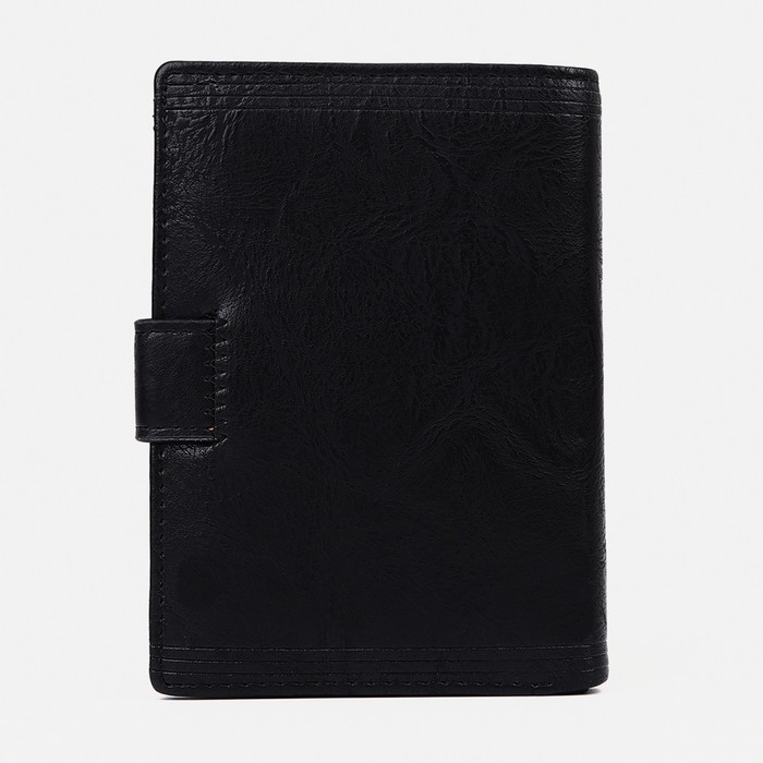Портмоне мужское на кнопке, 3 в 1, для автодокументов, паспорта, карт, купюр, цвет чёрный