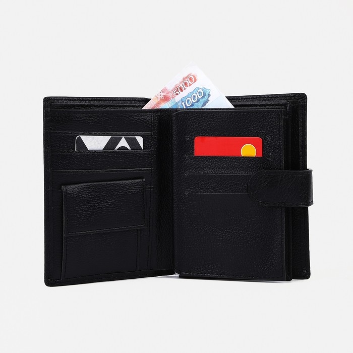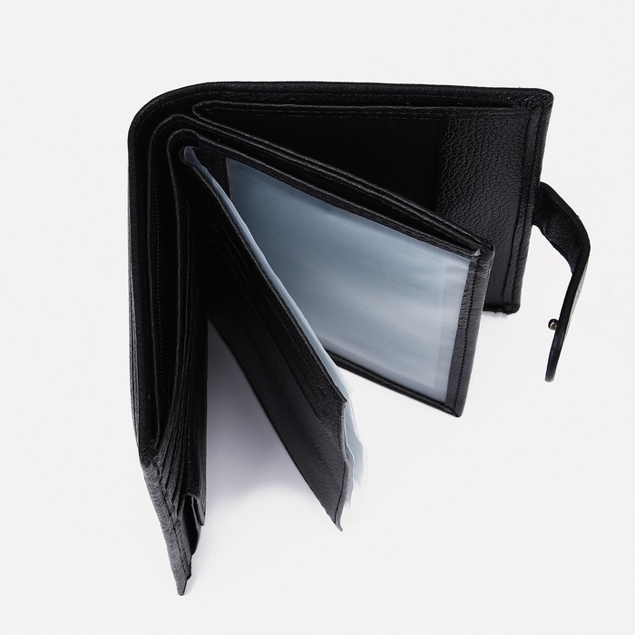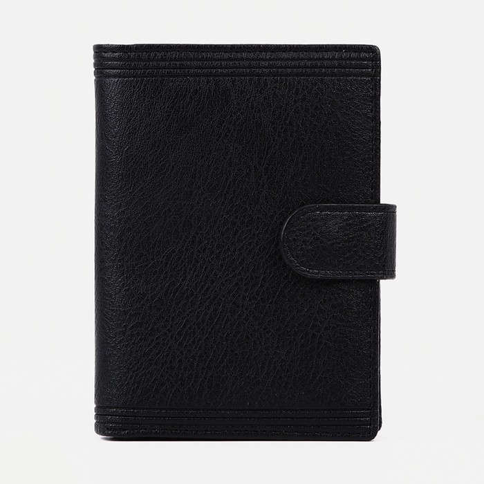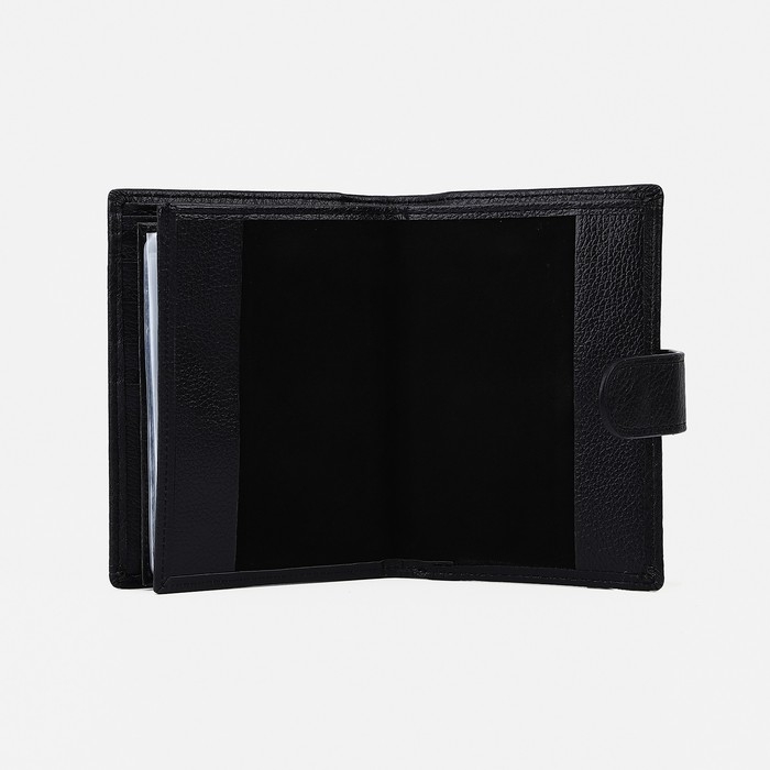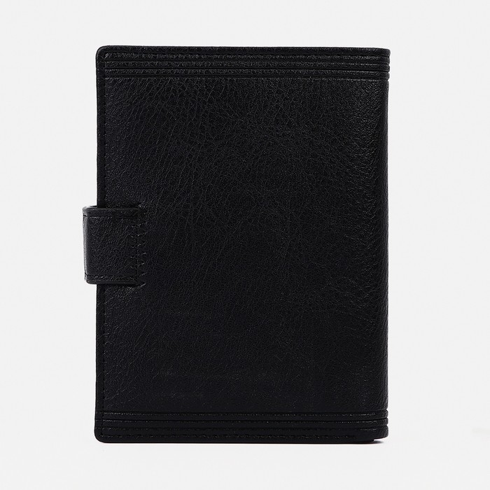 Портмоне мужское на кнопке, 3 в 1, для автодокументов, паспорта, карт, купюр, цвет чёрный