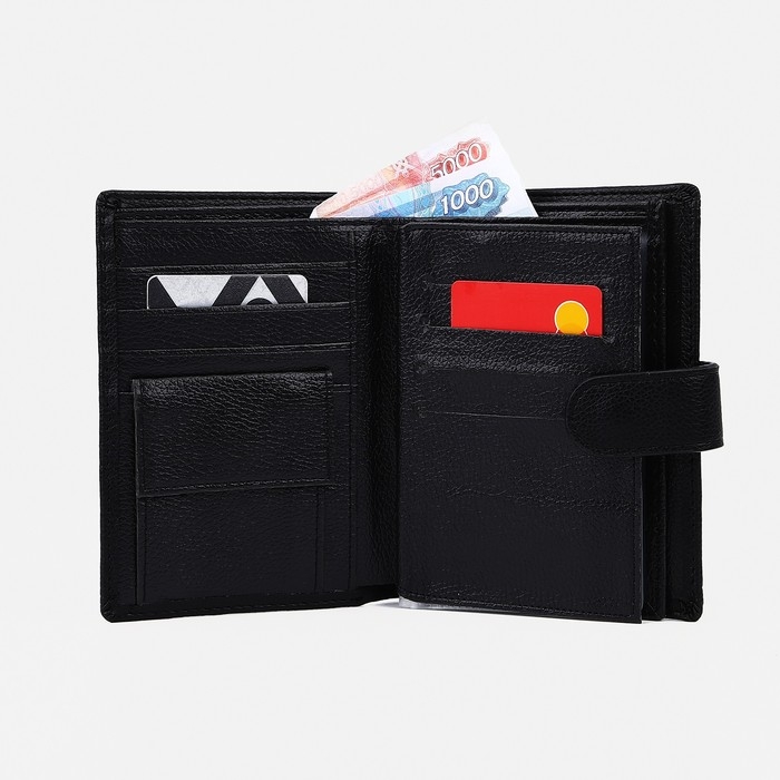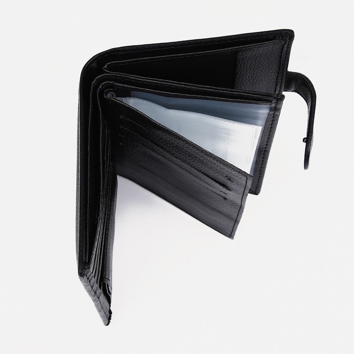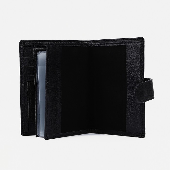 Портмоне мужское на кнопке, 3 в 1, для автодокументов, паспорта, карт, купюр, цвет чёрный