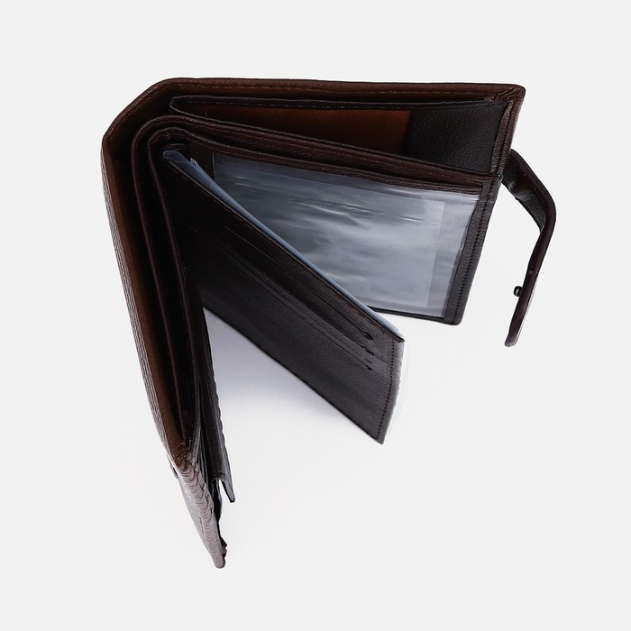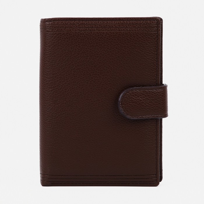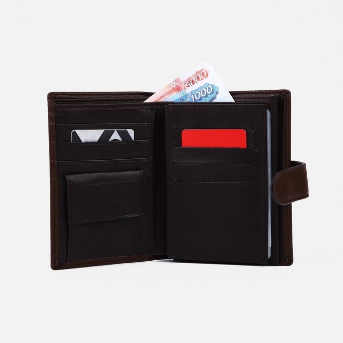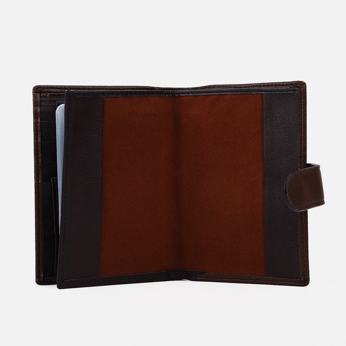 Портмоне мужское на кнопке, 3 в 1, для автодокументов, паспорта, карт, купюр, цвет коричневый