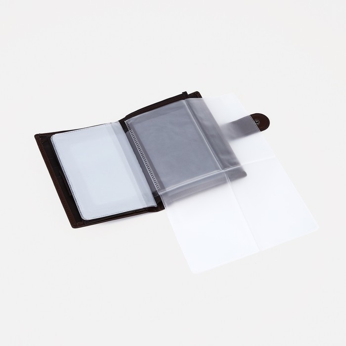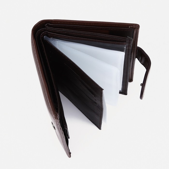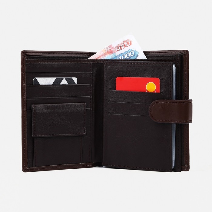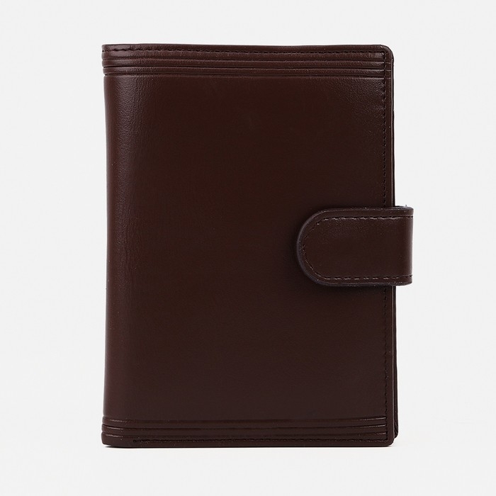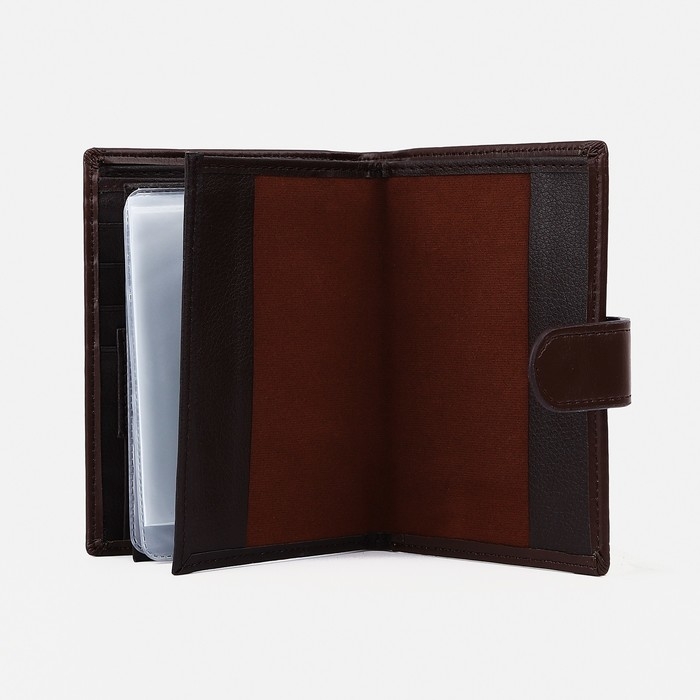 Портмоне мужское на кнопке, 3 в 1, для автодокументов, паспорта, карт, купюр, цвет коричневый