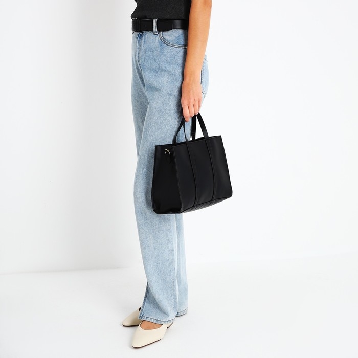 Сумка женская тоут на молнии, цвет чёрный