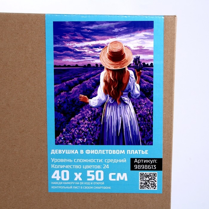 Картина по номерам на холсте с подрамником "Девушка в фиолетовом платье" 40*50 см