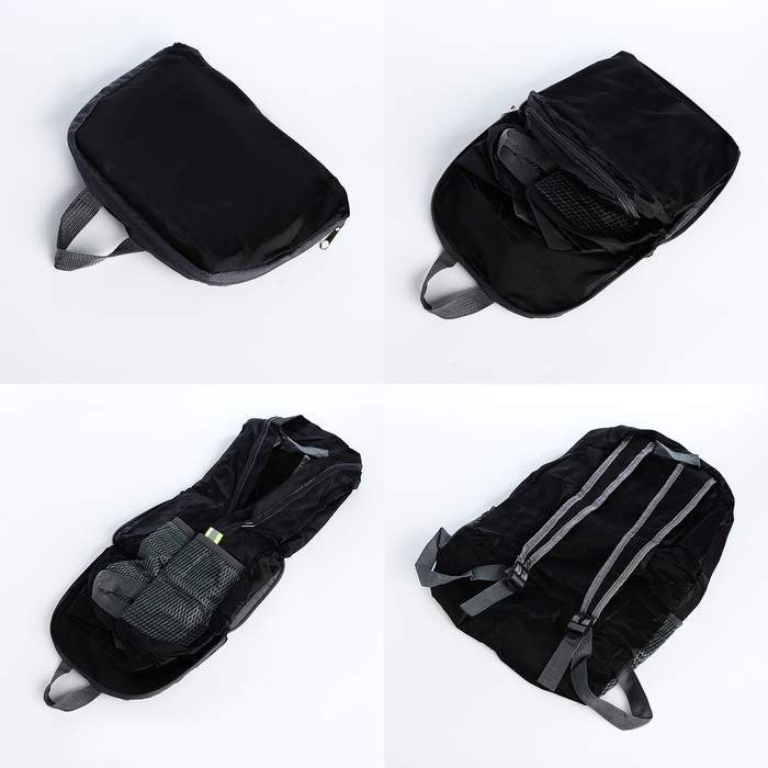 Рюкзак складной, отдел на молнии, наружный карман, 2 боковых кармана, цвет чёрный