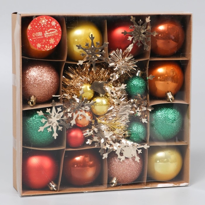Набор шаров пластик d-6 и 2,5 см, 21 шт «Каникулы» яркое ассорти, мишура 1 м, микс