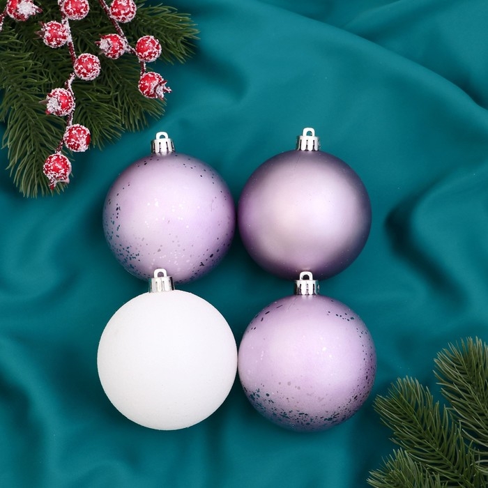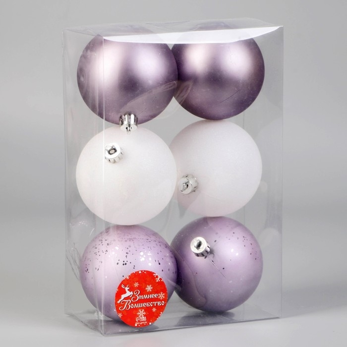 Набор шаров пластик d-8 см, 6 шт «Элит» сиреневый белый