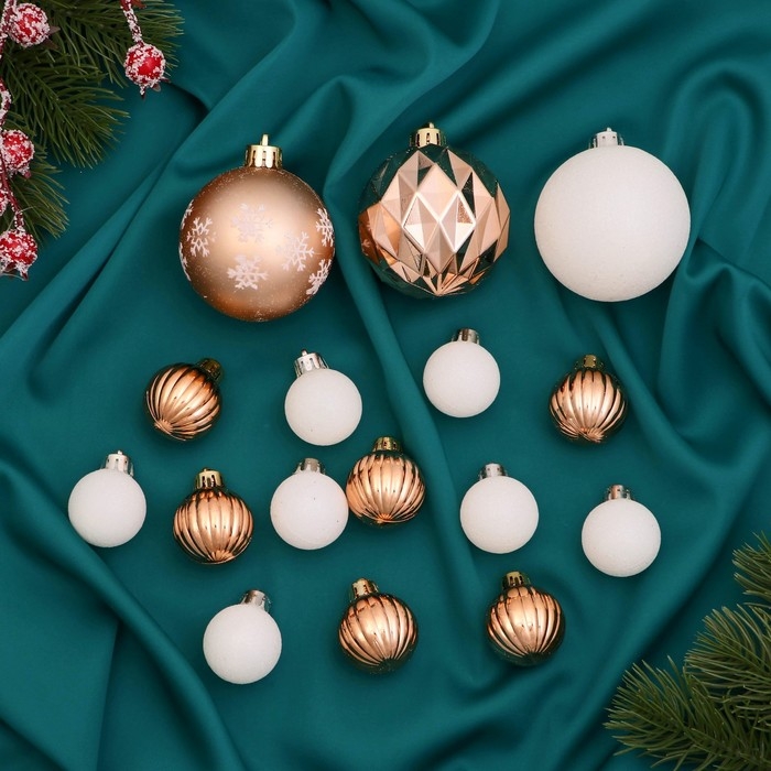Набор шаров пластик 44 шт d-3 и 6 см "Изабель" ассорти, белый золото