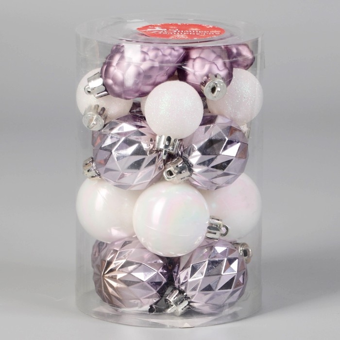 Набор украшений пластик 21 шт "Изабель" шишки, d-3 и 4,5 см, белый сиреневый