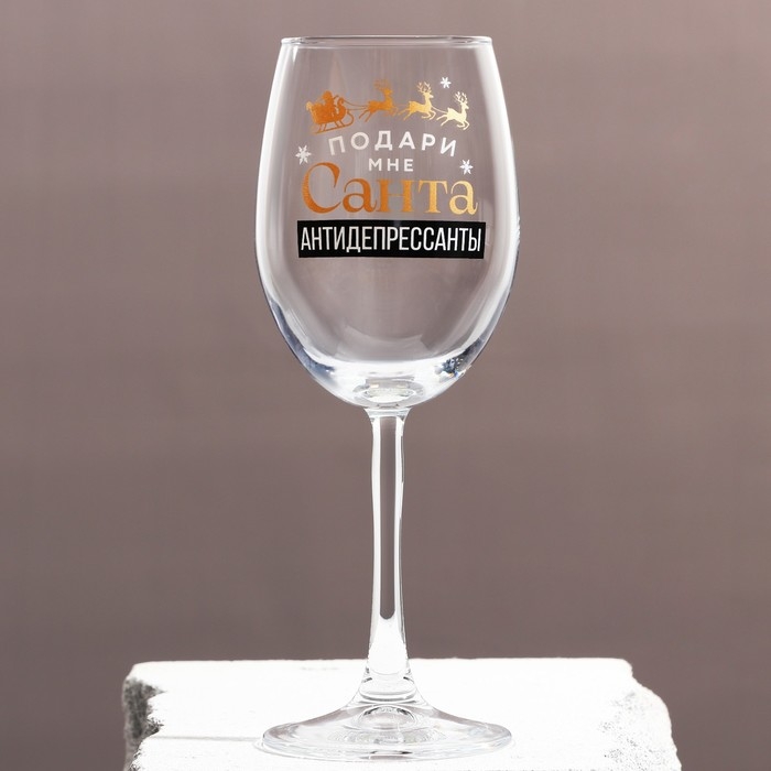 Бокал для вина новогодний «Антидепресcанты», на Новый Год, 360 мл