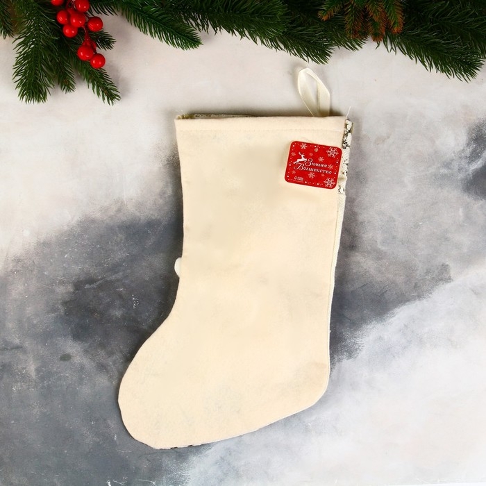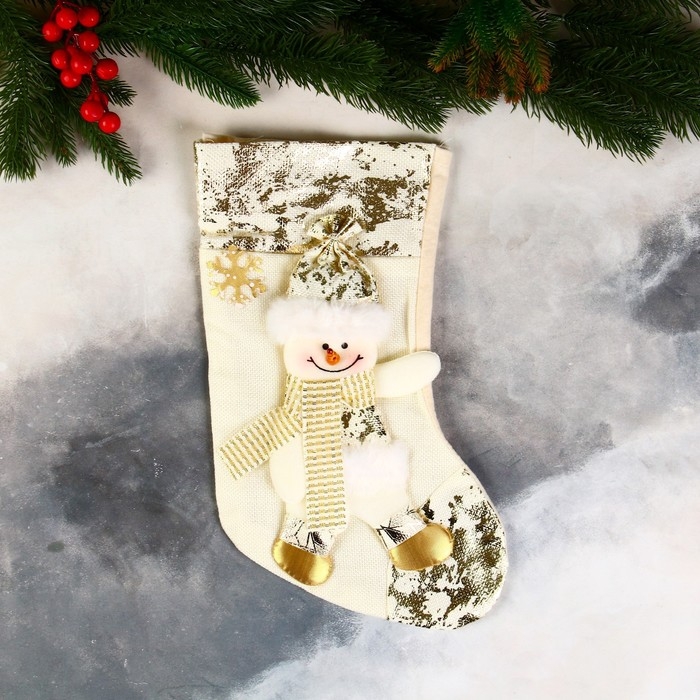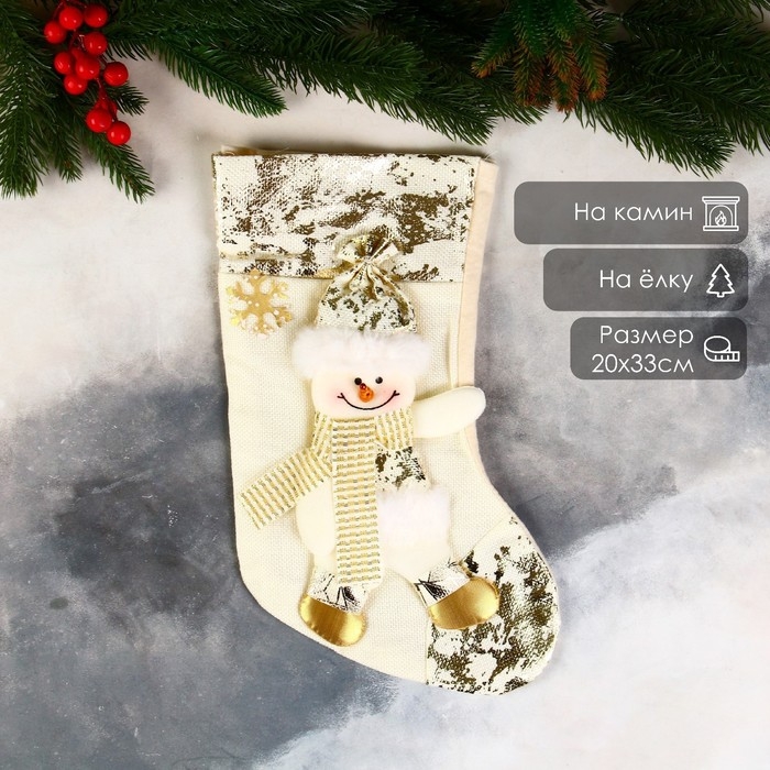 Носок для подарков "Снеговик в шарфике, поталь" 20х33 см, золото
