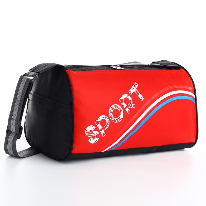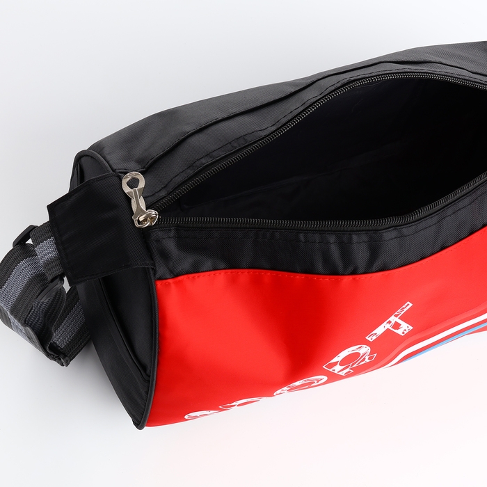Сумка спортивная на молнии, боковой карман/сетка, регулируемый ремень, маленький размер, цвет чёрный/красный