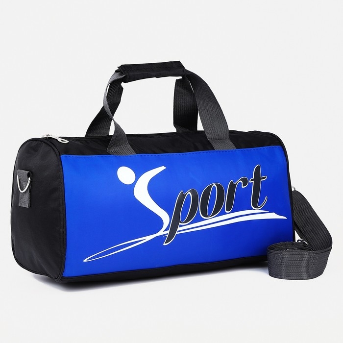 Сумка спортивная на молнии, длинный ремень, маленький размер, цвет чёрный/василёк