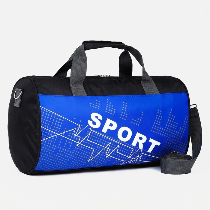 Сумка спортивная на молнии, длинный ремень, средний размер, цвет чёрный/василёк