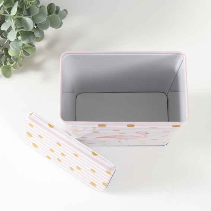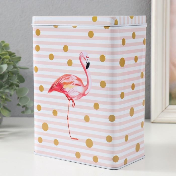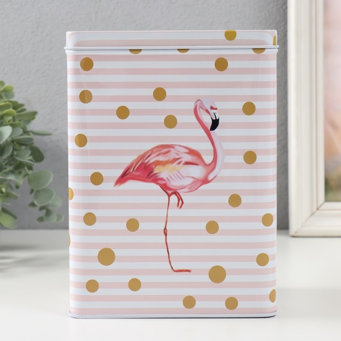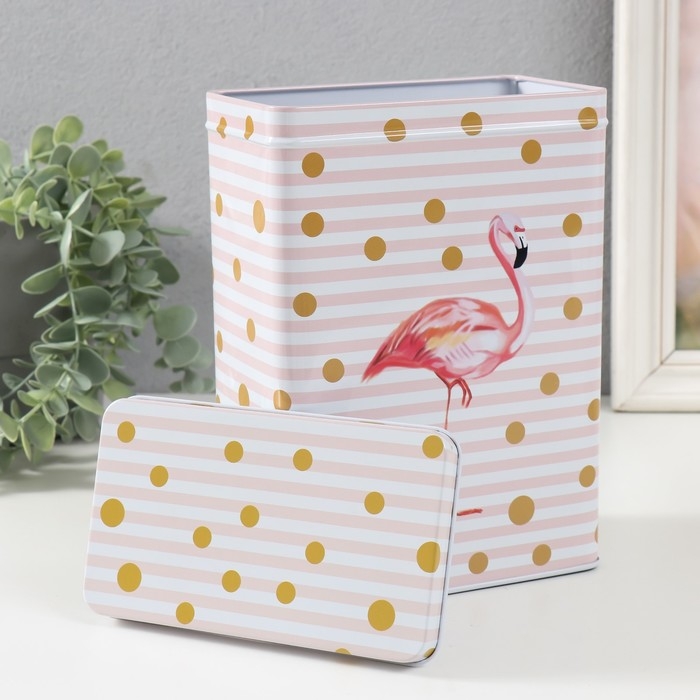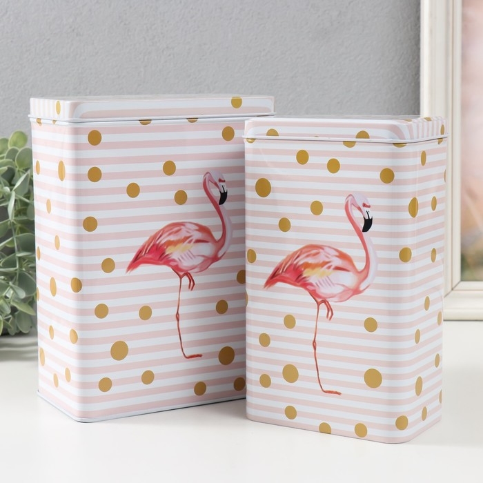 Шкатулка металл прямоугольная "Фламинго и золотой горох" н-р 2 шт 7х11х18,5 8,5х14,5х20 см